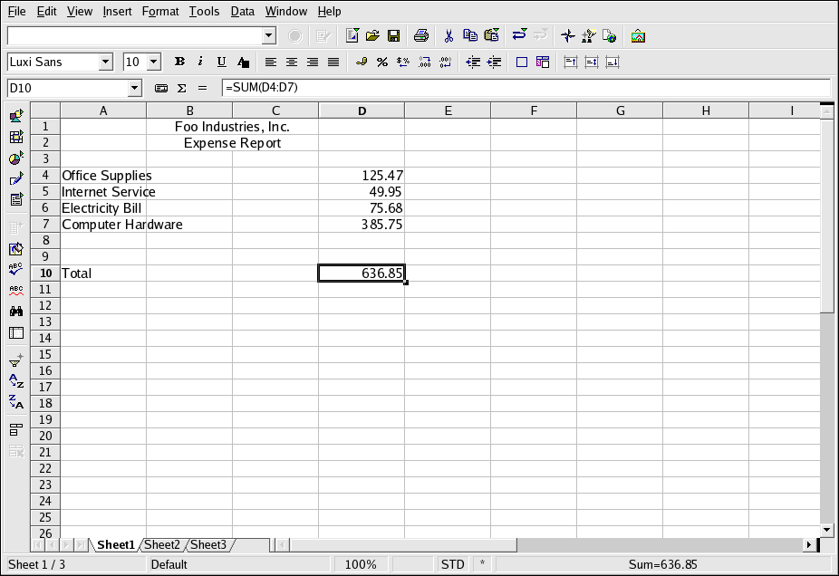 From large enterprises to home offices, professionals in every industry use spreadsheets for keeping records, creating business charts, and manipulating data. OpenOffice.org Calc is a software spreadsheet application that allows you to enter and manipulate data cells organized in columns and rows. A cell is a container for individual pieces of data, such as a quantity, label, or mathematical formula. You can perform calculations on groups of cells (such as adding or subtracting a column of cells) or create charts based on the quantities contained in a group of cells. You can even incorporate spreadsheet data into your documents for a professional touch.